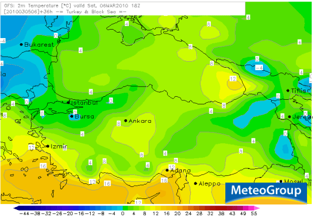 Yüksek basınç çok daha doğuda, tam hayal ettiğimiz biçimde güneye doğru uzayarak konumlanmış ve soğuk havayı Karadeniz üzerinden taşıyarak ulaştırıyor. Sea effect şartları tam olarak sağlanıyor, soğuğun geldiği yer soğuğun harman olduğu yer, üstüne üstlük Ege’den İç Anadolu’ya doğru ilerlemiş nefis bir siklon nemini bütün Anadolu’ya yaymış, poyrazı da yay gibi geriyor. Ayrıca bu sistemde İzmir-Çeşme yolunun saatlerce kapalı kaldığını, kar başlamadan önce sıcaklığın İstanbul’da eksi 2, Ankara Esenboğa’da eksi 10 derece olduğunu, yani gelen soğuğun haricinde var olan soğuğun da muazzam olduğunu biliyor muydunuz?
