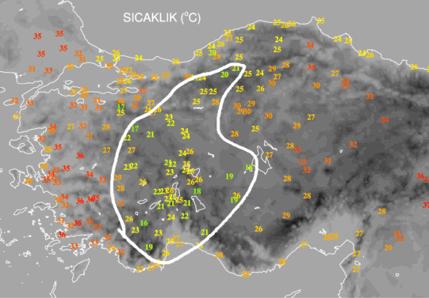 Gökgürültülü sağanak yağışlarının tam altında kalan şehirlerde sıcaklık inanılmaz düşüyor. Son bir haftadır gözlemlediğim kadarıyla bu şehirlerde yağış esnasında 17-20 derecelerde oldukça serin bir hava yaşanırken, komşu şehirler 30-35 derecelere kadar çıkıyor. Biz İstanbul’lu olarak her yıl olduğu gibi bu öğleden sonraları oluşan yağışları sadece seyrediyoruz. Esasında bu İstanbul şehrinin şansızlığı değil bir bakıma şansı diyebiliriz.Bu metropol aniden bastıran bu kararsızlık yağışlarını kaldıramazdı. İstanbul için en iyi yağış poyrazın Karadeniz üzerinden sürüklediği bulutlardan dökülen alt yapımıza en uygun meşhur çisentili yağmurumuzdur.Sindire sindire yağacak ki dereler taşmasın. Ozan kardeş bu arada İnternette hava olaylarını en doyurucu ve etkileyici sen yorumluyorsun bilmem farkında mısın?