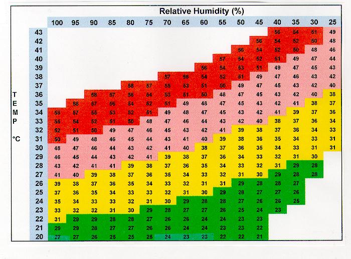 Kanadalılar sıcaklıkta bizim gibi Celcius ölçeğini kullandıkları için, ben de değerleri hesaplarken Environment Canada‘nın humidex formülünü kullandım. Bu formüle göre, 23.5 derece ve altındaki sıcaklıklar için hissedilen sıcaklık değeri ölçülen sıcaklık değeri ile aynı oluyor. (Aşağıdaki tabloda öyle değil gerçi ama öteki değerleri görün diye koyuyorum)