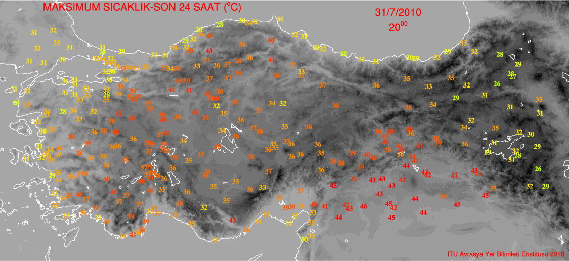 Denize hasret Anadolu şehirleri ise ne yazık ki kavruldu, İç ve İç Batı Anadolu’da 40 dereceler (bazıları rekordur), Güneydoğu’da 45 dereceler kol gezdi.