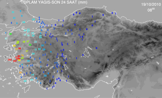 Kilogram vermek kolay değil… Ama çok kuvvetli yağışlar olabileceği muhakkak. 100 kg civarında diyelim. 12-17 Ekim arasında da İzmir’de şiddetli yağış bekleniyordu ama Menemen tarafına düşen 80 kg haricinde pek bir şey olmadı. Gerçi bunda daha kararlı gibi modeller.. Bakalım. Bu arada, lütfen yorumlarımızda yazım kurallarına biraz daha dikkat edelim. Yorumların okunaklı olmasını istiyorum, bu şekilde hem blogun çekiciliği artıyor hem de ben moderasyon yükünden kurtuluyorum. Herkese duyarlılığı için şimdiden teşekkür ederim.
