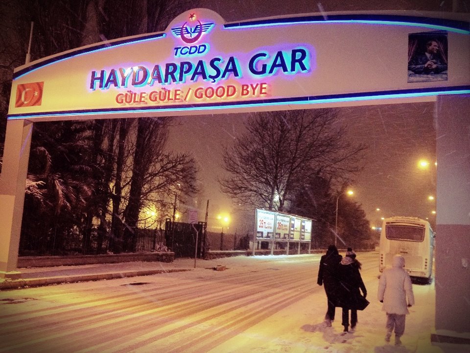 Sağolsun, büyük saadeti Haydarpaşa gar binası hazırlamış. Peronlardan iskeleye çıkan kapılara doğru yürüdüm. Dışarı çıktığımda Boğaz’dan doğru esen sert rüzgar yüzümü tokatladı, kafamı o tarafa çevirdim: Yeni başlayan tipi Avrupa yakasını yavaş yavaş sarıyor; şehir, karın beyaz perdesinin arkasında görünmez oluyordu. İstanbul’da hep olageldiği gibi, hayal ettiğimden de güzeldi. “İşte bu,” dedim kendi kendime, “şehir tekrar ortaya çıktığında ben de yeniden doğmuş olacağım”.