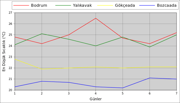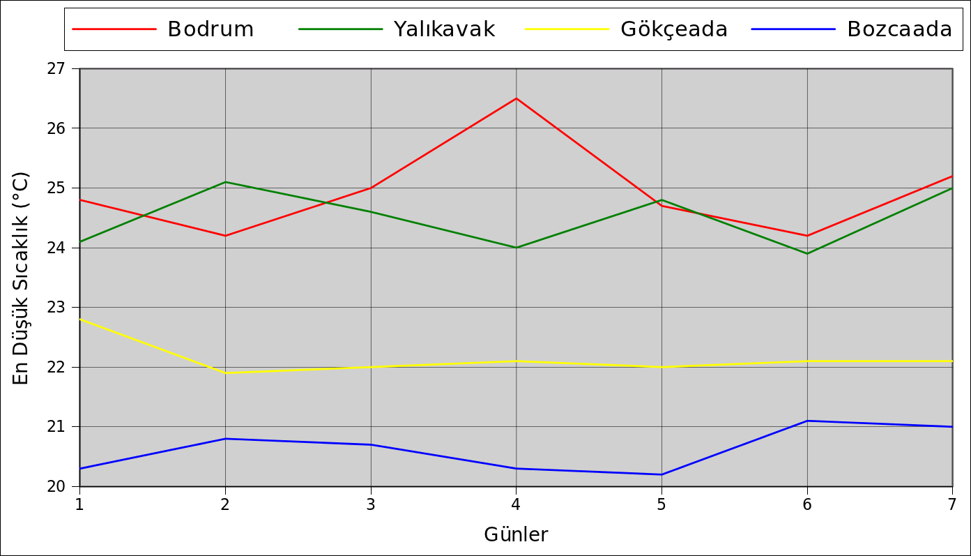 Peki Bodrum’un sıcağı şehir ısı adasından kaynaklanıyor olamaz mı, belki istasyon binaların arasında kalmıştır? Bunu, günün en düşük sıcaklıklarına bakarak anlayabiliriz, çünkü binalar gündüz emdikleri ısıyı gece kusarlar.