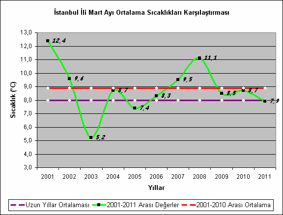 * 2011 Mart ayı uzun yıllar ortalama sıcaklığı ile aynıdır.