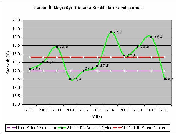 * Son on senede (2011 hariç) Mayıs ayı ortalama sıcaklığı uzun yıllara oranla yaklaşık 0,8°C artmıştır.