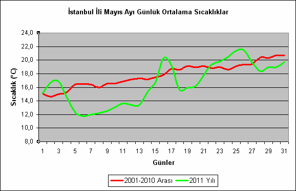 * 2011 Mayıs ayı uzun yıllar ortalamasından yaklaşık 0,5°C serin geçmiştir.