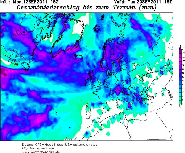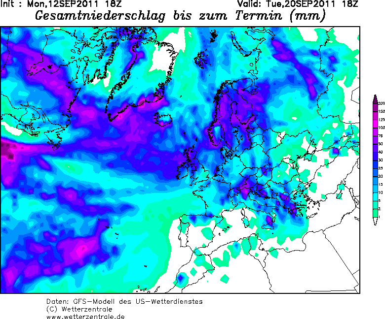 (önümüzdeki 8 gün için GFS modelinin tahmin ettiği toplam yağışın haritası)