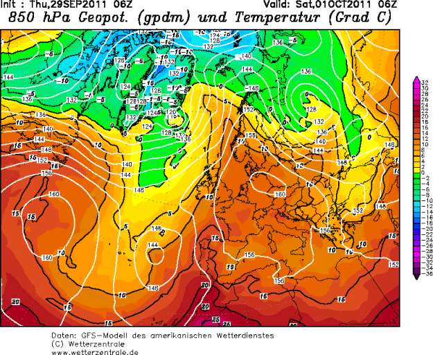2 gün öncesine kadar GFS çıktılarında tepe enverziyonunun olması gereken seviyelerde yeller esiyordu, nihayet ortaya çıkmaya başladı. 30 Eylül 2011 15Z-21Z zaman aralığı GFS skew-t diyagramına göre, deniz etkisi yağışları için en elverişli koşullar var, fakat yer seviyesindeki nemlilik keşke biraz daha fazla olsaydı…%68-71 seviyelerinde ve yoğunlaşma depresyonu 5-6 derecelerde, şiddetli bir yağış olamaz. Nem durumunu bir daha yarın sabah kontrol etmek lazım.