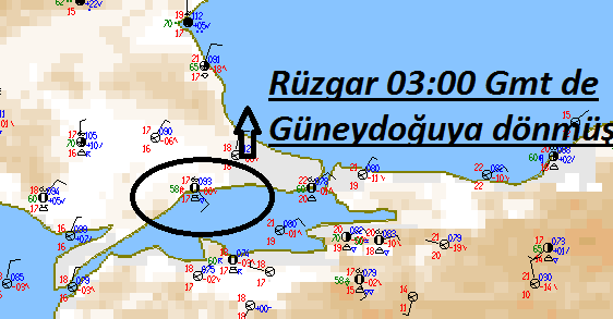 21 Eylül 18:00 GMT (İngiltere saati, bizim saati bulmak için yaz saati süresince 3 saat ekleyiniz) yer kartına baktığımızda Tekirdağ üzerinde zayıf da olsa bir alçak basınç olduğu görülüyor (1012,1 mb). 22 Eylül 03:00 GMT’de basınç değeri 1009.3 mb. Bidiğimiz gibi alçak basıncın olduğu yerlerde yükselici hava hareketleri vardır. Yer rüzgarı da 21 Eylül öğle saatlerinde kuzeydoğudan (poyraz) 15 knot esmekte iken akşam saatlerinden itibaren hafiflemiş, 03:00 GMT’de ise güneydoğuya (keşişleme) dönmüş ki bir çok model bunu göremedi. Hava sıcaklığı 17 derece, ama deniz suyu sıcaklığının 23 derece olduğu da unutulmamalı.