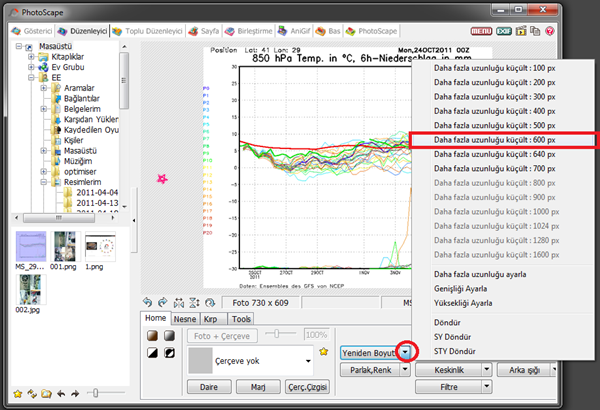 “Daha fazla uzunluğu küçült: 600 px” i tıkladığınızda resminiz otomatik olarak yeni boyutuna gelecektir.