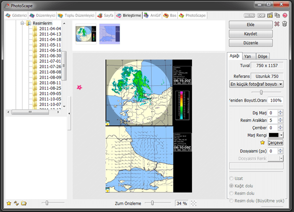 Bu da çok hoş bir fonksiyon, istedigimiz kadar resmi alt alta, yan yana veya dört bir yana döşeyerek birleştiriyoruz.