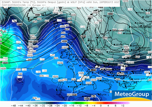 ECMWF modelinin önümüzdeki günler için yer basıncı ve 500 hPa (yaklaşık 5500 metre yükseklik) sıcaklık animasyonu