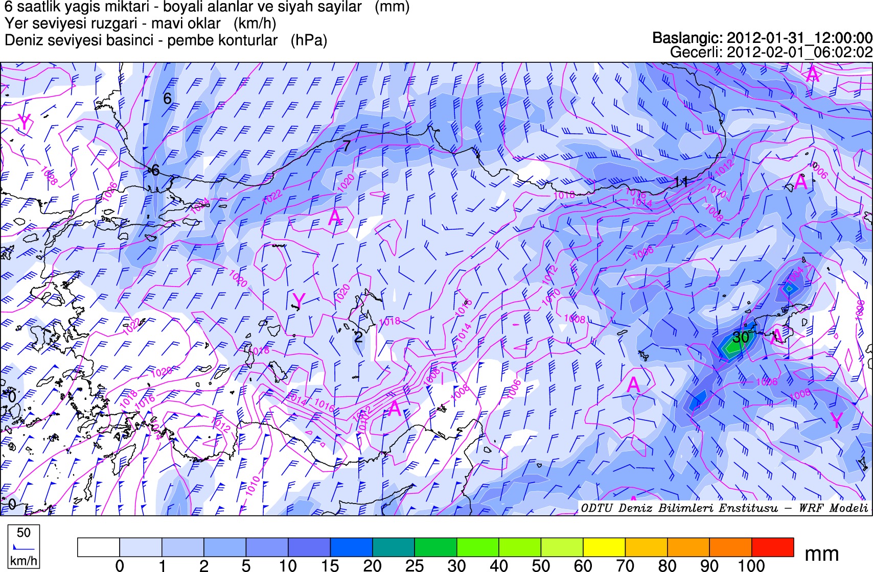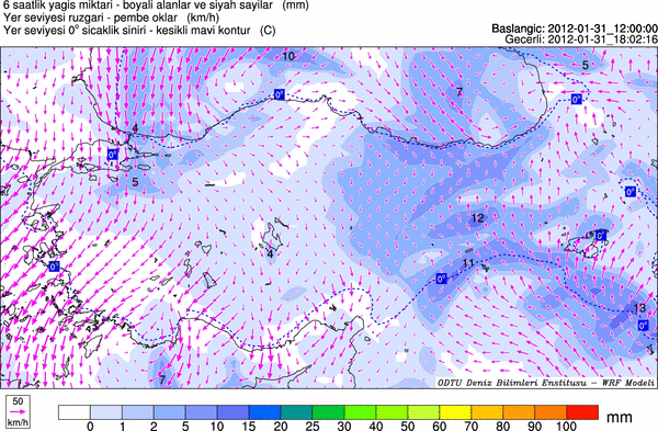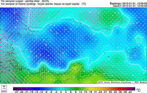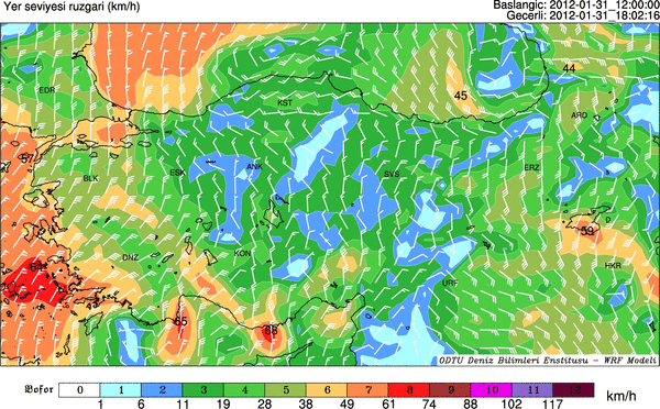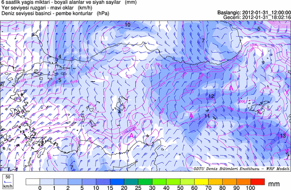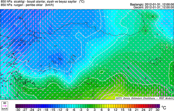 Aşağıdaki çıktılar (birden fazla var, “gerisine de bakayım”a basıp devam edin), 31 Ocak 2012 saat 12’den 2 Şubat 2012 saat 00’a kadar olan zaman dilimini kapsıyor. Animasyonlara tıklarsanız, animasyonları oluşturan grafiklerden bir örneği daha büyük olarak görüp inceleyebilirsiniz.