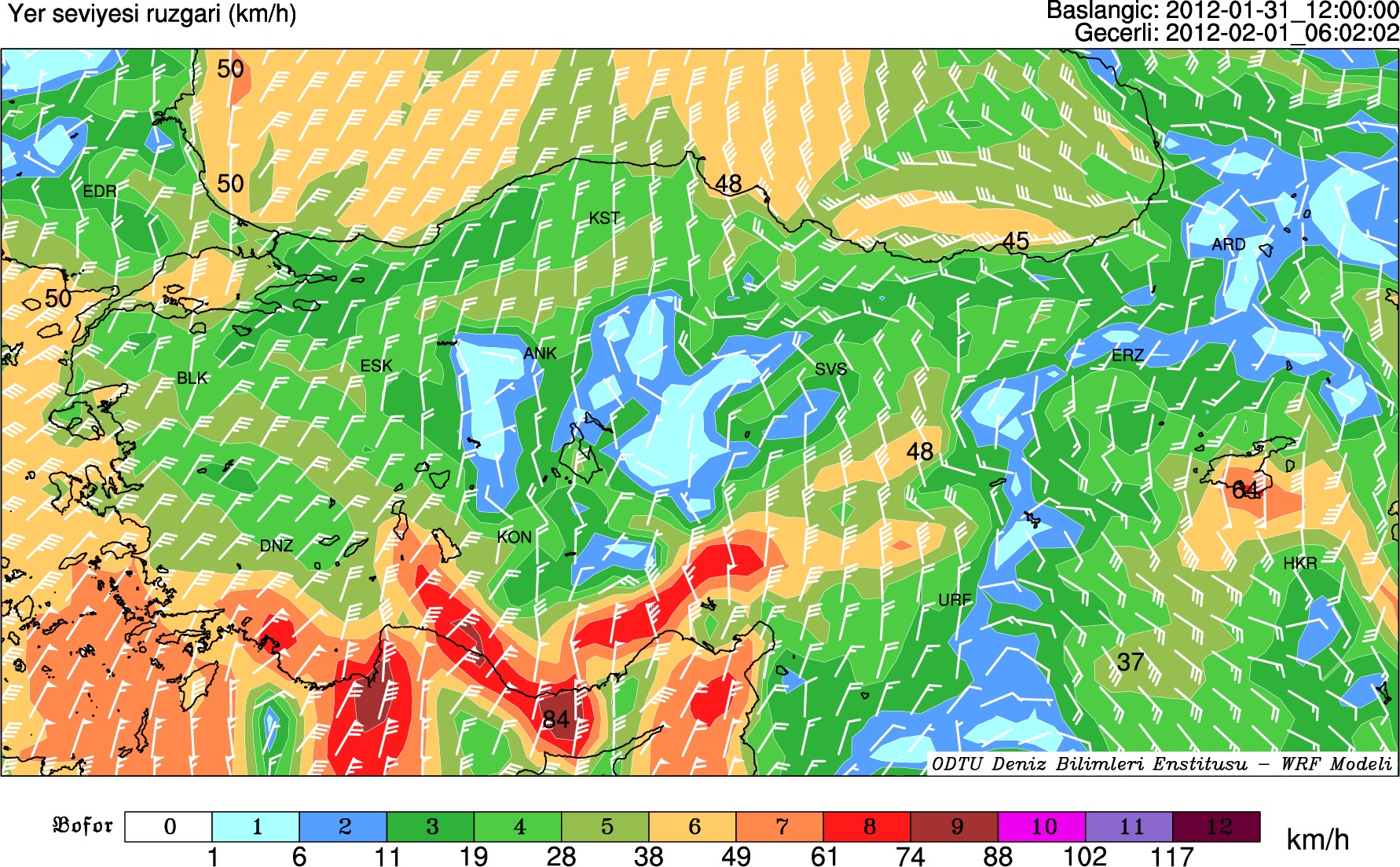 Hocam öncelikle skalalar ve renklendirme çok güzel olmuş, tebrikler… Yalnız rüzgar değerlerinin knot olarak verilmesi çok daha doğru olur. Ben şimdiye kadar herhangi bir modelde km/s kullanıldığını görmedim. Profosyonel olsun, bu işten biraz anlayan amatör meteorolog olsun “knot” görmeye (kullanmaya) alışkın olduğundan diğer birimler kafa karışıklığına yol açabilir.