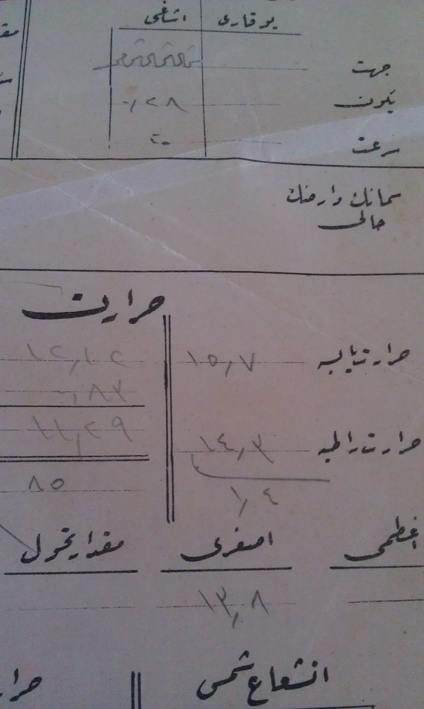 ikinci sayfada en üstte aşağı ve yukarı yazıyor aşağının altında da değerler yazılmış sağ ikinci de sanırım “yekun” ve altında da saat yazılı…
