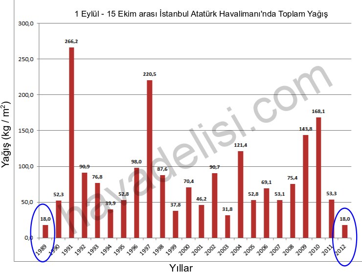 İstanbul Atatürk Havalimanında, Ekim ayı ilk 10 günü uzun yıllar (1973-2011) sıcaklık ortalaması 18,1°C’dir. 2012 yılı Ekim ayı ilk 10 günlük ortalama sıcaklığı 21,1°C olarak kaydedilmiştir. Mevcut diyagrama göre ay sonunda tarihi rekor gelebilir.