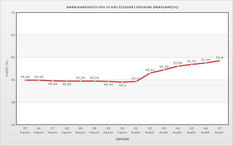 Aralık ayının ilk haftasında Trakya’da görülen yağış toplamları: Edirne 65 kg, Kırklareli 143 kg, Tekirdağ 123 kg, Çanakkale 119 kg, Muratlı 99 kg, Çatalca: 82 kg (ama DMİ sayfasında son iki günkü Çatalca verilerini paylaşmamış, en az 10’ar kg olduğunu varsayarsak orası da 100 kg’ı geçer).