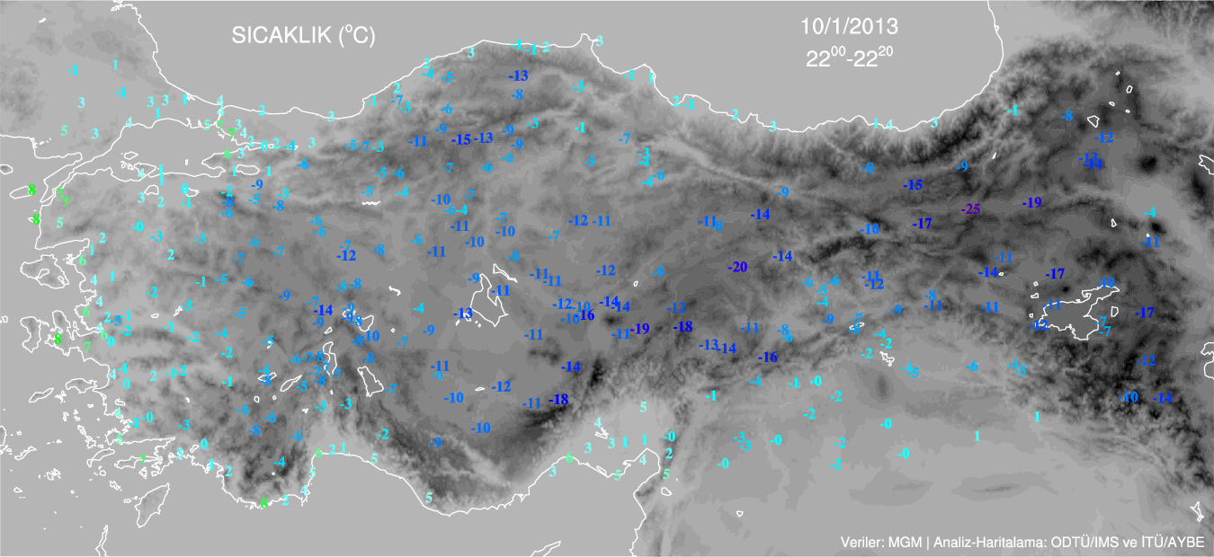 Az önce gördüğüm kadarıyla, kar 1000 metrede buradan (965 metre) daha iyi tutuyordu. Toprak sıcaklığı da hala sıfırın altında ama çok da altında değil çünkü yollar tutmuyor, sadece kaldırım gibi önceden soğuk olan yüzeylerde düşen kar taneleri erimeden kalıyor. Ankara için sıcaklık terselmesi olmaması şu an için büyük şans çünkü şu koşullarda terselme olsaydı büyük ihtimalle ‘donamayan’ yağmur yağardı. Bu böyle bir sistem, heyecanı yeter diyelim ve fazla bir şey beklemeyelim… Gelsin eksiler 😀