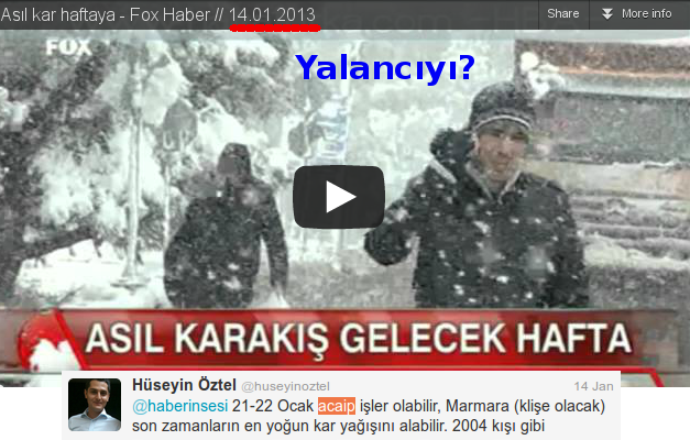 (Aşağıda Twitter mesajına yer verdiğim Hüseyin Öztel, SkyTürk meteoroloji editörüdür, Fox TV ile bir bağlantısı yoktur.)