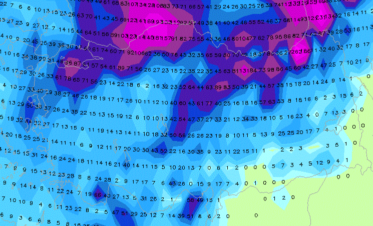 Bu bile, sistemin rekortmenlere ne kadar özendiğini ve yılın bu zamanı için ne denli sağlam olduğunu anlamaya yeter. Aşağıdaki de GFS’ye göre 6 Ekim’e kadar beklenen metrekareye kilogram (ya da milimetre) cinsinden toplam yağış miktarları…
