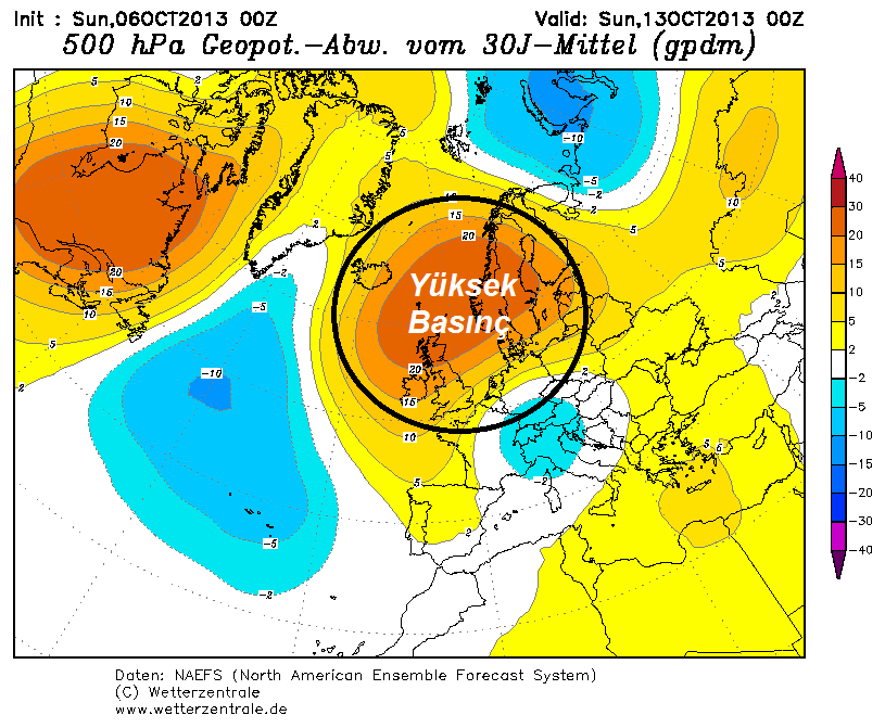 Bu ayda soğumadan ziyade, asıl dikkat çeken husus ise, aynı 2011 Kasım ayındaki gibi Orta ve Doğu Avrupa Merkezli bir yüksek basınç merkezinin kıtaya Ekim ayı boyunca hakim olma ihtimali. Ayın ilk 10-15 günü bu şekilde olacak, sonraki 15 günü ise şu anda net konuşamayız.