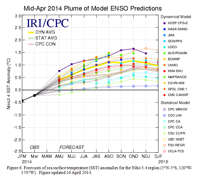 Nisan 2014 itibariyle bazı kurumların ENSO tahminleri de aşağıda.. Çok kuvvetli olmayacak gibi ama bakalım..