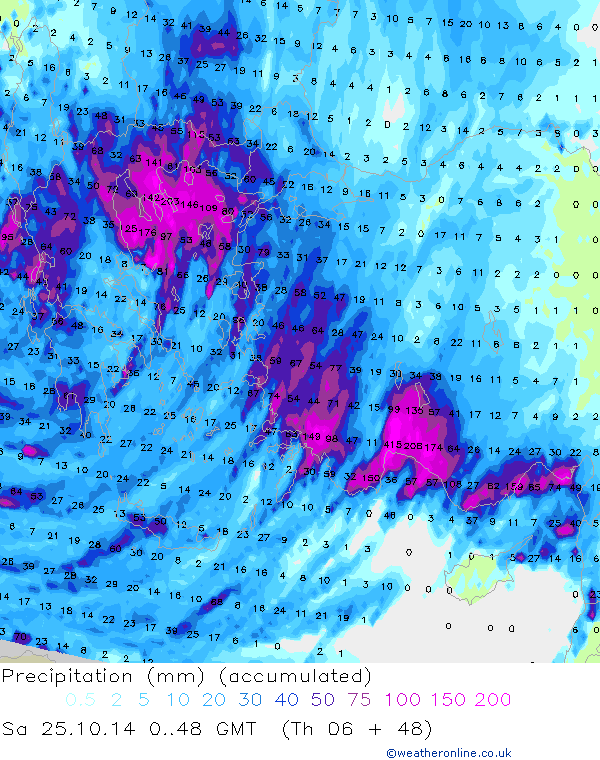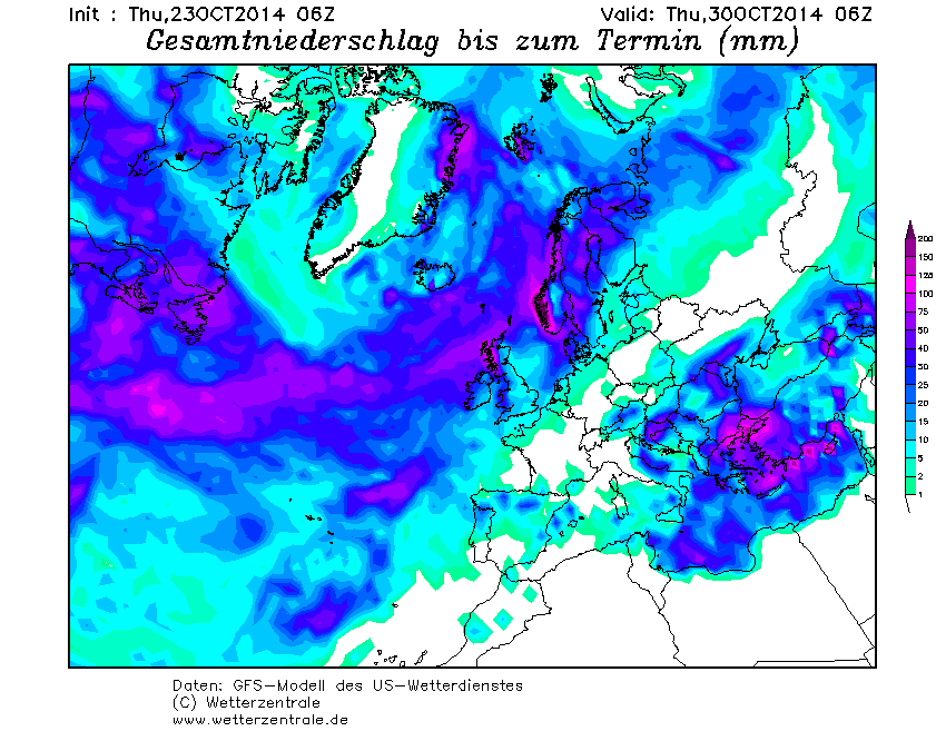 Bu harita ise Euro4 modelinin önümüzdeki 48 saat için öngördüğü toplam yağış miktarı.