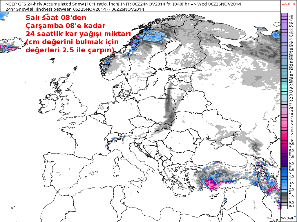 Gökgürültülü kar İç Anadolu’ya kadar sarkıyor. Bir de tam anlayamadım, yağış neden Konya-Ankara il sınırında takılı kaldı? Alçak basıncın konumu ya da daha önemlisi konumuna ek olarak genişliği mi sebep? https://biolsystematics.files.wordpress.com/2014/11/25-kasim-2014.jpg