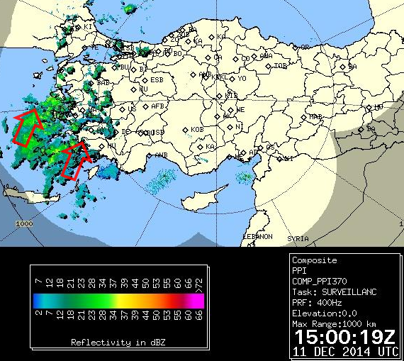 İzlanda civarında devamlı olarak türeyen alçak basınçların Akdeniz Havzası’ndaki mirasçıları olan yeşil kütleler (aşağıda), şu saatler itibariyle Ege Kıyıları’ndan başlayarak ülkemizin batısını tekrar yıkamaya başladı…