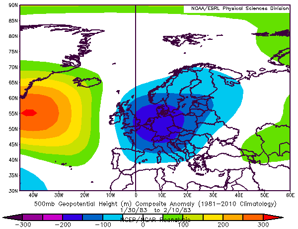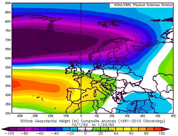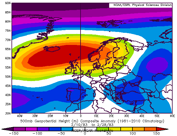 1983 kışında Şubat başından itibaren AO/NAO endekslerinin negatife indiğini, Şubat’ın ikinci yarısında Batı Avrupa Yükseği’nin blokajını ve ülkemiz adına normalden soğuk bir kış sonu yaşandığını görüyoruz.