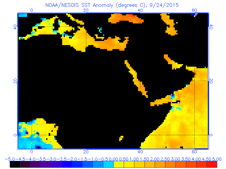 Türkiye civarındaki denizlerin su sıcaklığının 'normal'den farkı (şu sıralar). Karadeniz normalden 1-3 derece ılık... Bu mevsimde hemen her yıl böyle artık...