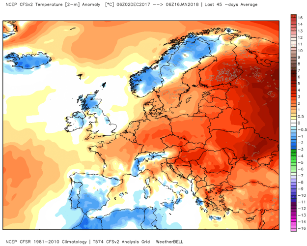 Kadere bakın ki, 2018 kışının ilk yarısı da neredeyse tüm Türkiye’de geçen senenin aksine son dönemin -soğukçular için- en berbat kışlarından birisi olarak tarihe geçti. Aşağıdaki görselden de anlayabileceğiniz üzere Avrupa’nın önemli bir kısmı, Rusya, Balkanlar ve Türkiye Aralık ayı başından beri ortalamada mevsim normallerinin üzerinde sıcaklıklara maruz kalıyor: