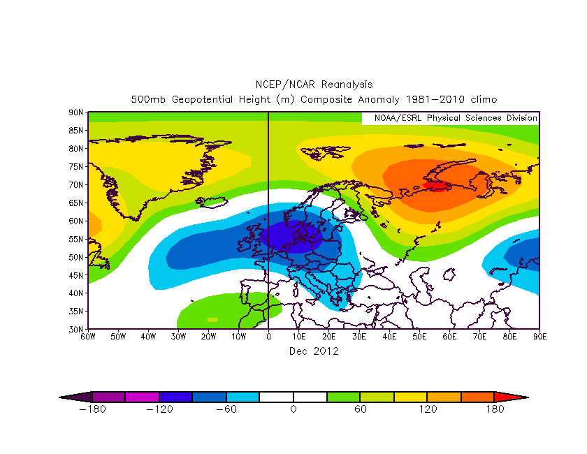 Peki İzlanda neden bu kadar aktif ve kuzeyimizde neden soğuk birikmesi yok? Onun cevabı da aşağıdaki haritada. 7 Aralık 2012 00Z GFS çalıştırmasına ait bu çıktı, ay ortasındaki stratosferik kutup girdabını gösteriyor.