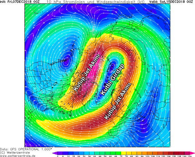 Kutup soğuklarını çevreleyen jet akımları, soğuk çekirdekleri yaklaşık birkaç haftadır Doğu Asya ve Atlantik Okyanusu arasında tutuyor. Buna paralel olarak Sibirya ve Doğu Asya’da -40 derecelere hatta daha da altına inen soğuklar görülüyor. Diğer tarafta ise Grönland üzerinden Atlantik Okyanusuna inen bu soğuk çekirdekler ılık denizle karşılaşınca devasa siklonlar oluşmasına sebep oluyor, henüz bir stratosfer ısınması da olmadığı için batılı esmeye devam eden jet akımları da zamanla bu siklonları Avrupa Kıtası içine sürükleyerek uzun süreli soğuk birikimini önlüyor.