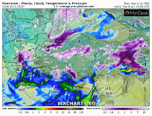 Önce batıdan, sonra ortadan en son da daha doğudan Anadolu’ya giriş yapan üç farklı siklon + deniz etkisi, sonuç beyaz bir Türkiye 🙂