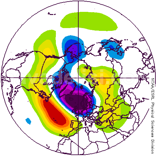 İkinci faz; Azor Yüksek Basıncı’nın daha batıda konumlanması sonucu Orta Avrupa’da negatif anomaliler ile seyreden pozitif NAO (1982, 1993, 1999, 2011, 2014) :
