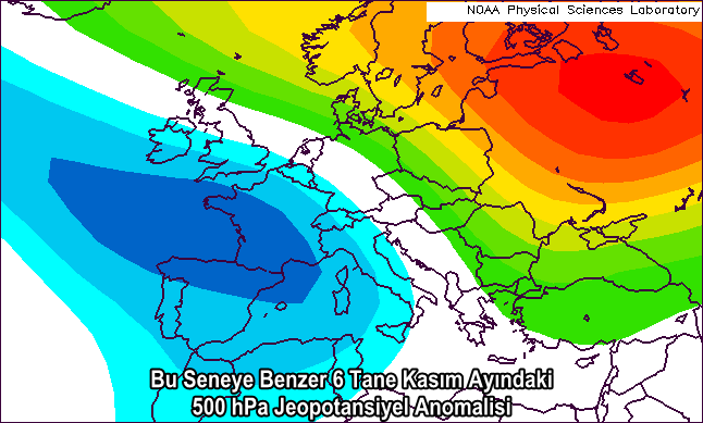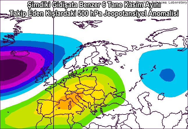 Son olarak bu 6 tane benzer Kasım ayını takip eden kışlarda 500 hPa jeopotansiyel yüksekliği nasıl olmuş ona bakalım.