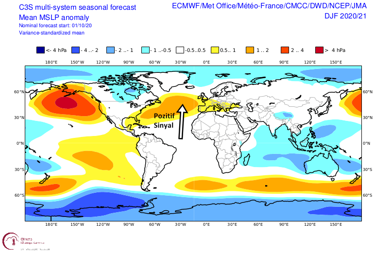 Çeşitli kurumların tahminlerinin ortalamasının baz alındığı Multi-System verilerine göre geçtiğimiz birkaç sene gibi önümüzdeki kış da pozitif NAO ile geçecek gibi görünüyor.