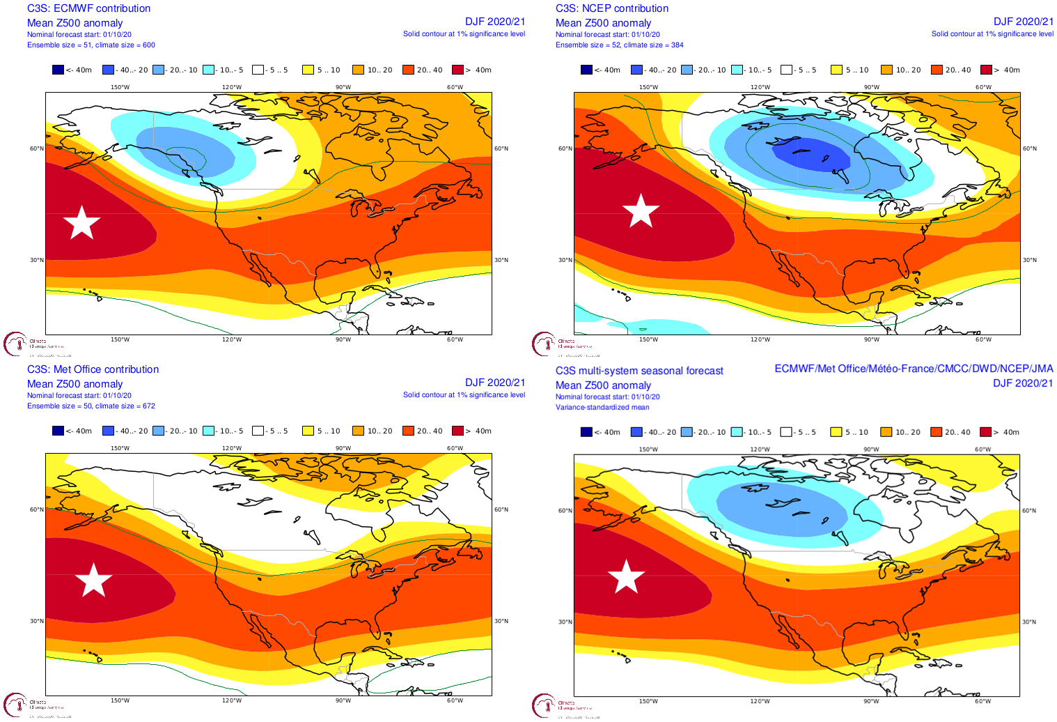 Bu yüksek basıncın önümüzdeki kış da klasik yerinde etkili olacağı hususunda (aşağıdaki haritada yıldızla işaretlediğimiz yer) tüm mevsimlik tahminler hemfikir durumda.