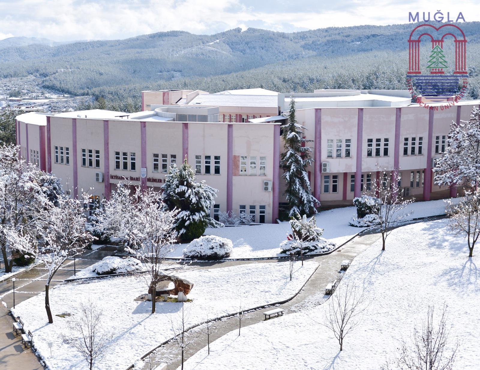 Muğla Sıtkı Koçman Üniversitesi’nin paylaştığı bir fotoğrafta, kampüs beyaz örtüyle kaplanmış durumda: