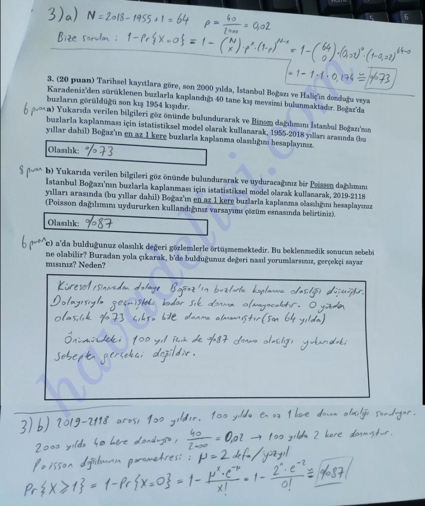Konuyla ilgili olarak, OMÜ Meteoroloji Bölümü’nde 2018 yılında Veri Analizi dersinde sorulan (kurucumuz Ozan Mert Göktürk’ün hazırladığı) sınav sorusunu yukarıda görmektesiniz. Sadece tarihsel istatistikleri kullanarak yapılan modelleme bizi, Boğaz’ın önümüzdeki 100 yıl içerisinde, büyük olasılıkla, en az 1 kere de olsa donacağı sonucuna götürmektedir, ama bu modelleme ne iklimin doğal değişkenliğini ne de insan kaynaklı küresel ısınmayı göz önüne aldığından, son derece yanıltıcı olacaktır.