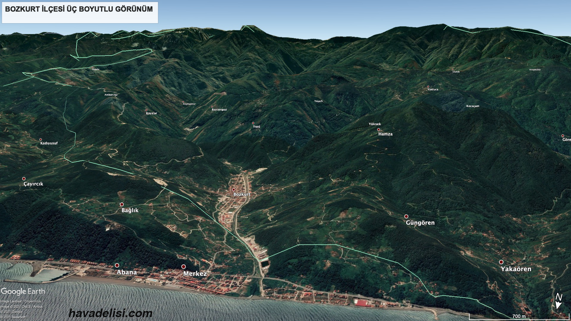 Karadeniz üzerinden güneye (Bozkurt yönüne) bir bakış. (Google Earth)