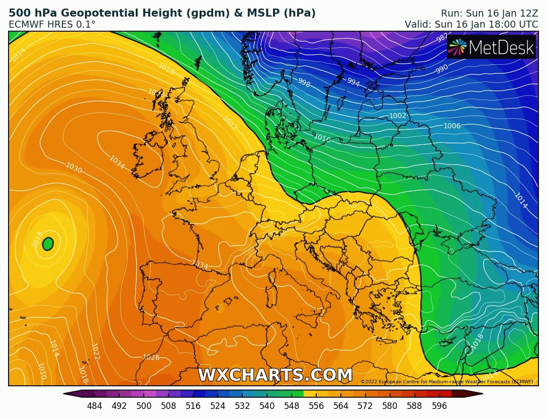 İngiltere’nin batısında yatay pozisyonda konumlanmış ve kimseye hayrı olmayan yüksek basınç alanı, ani bir manevrayla kafasını İskandinavya’ya doğru kaldırıyor. Soğuk hava böylece aşağı enlemlere yol alma imkanı buluyor.