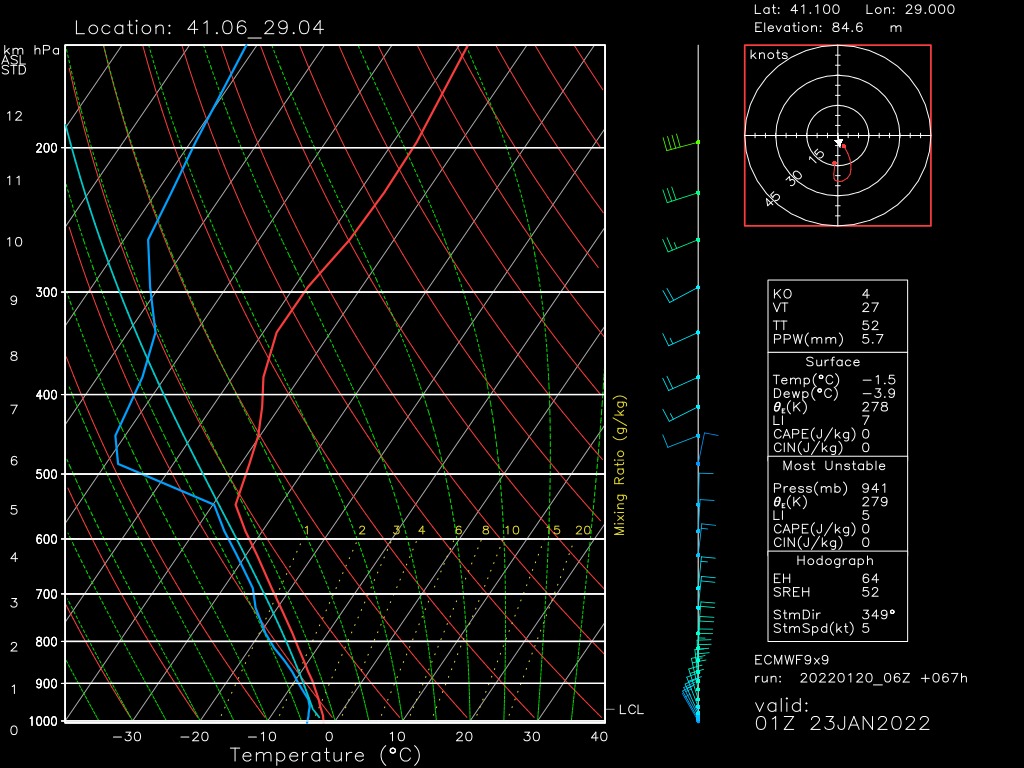 DEK şartları bu periyotta oldukça iyi. Nemlilik 550 hPa seviyesine kadar gayet yeterli. Rüzgar yönleri de yer seviyesinden 500 hPa seviyesine kadar uyumlu görünüyor. Kütleler ısrarlı oldukları yerde hızlı birikim yapacaktır.