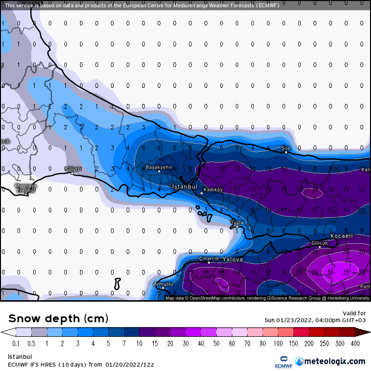 Cumartesi gece – Pazar öğlen arası, DEK’lere bağlı olarak; E5 çevreleri ve güneyinde 3-8 cm, TEM kuzeyinde ise 7-15 cm yeni kar örtüsü oluşması beklenebilir.
