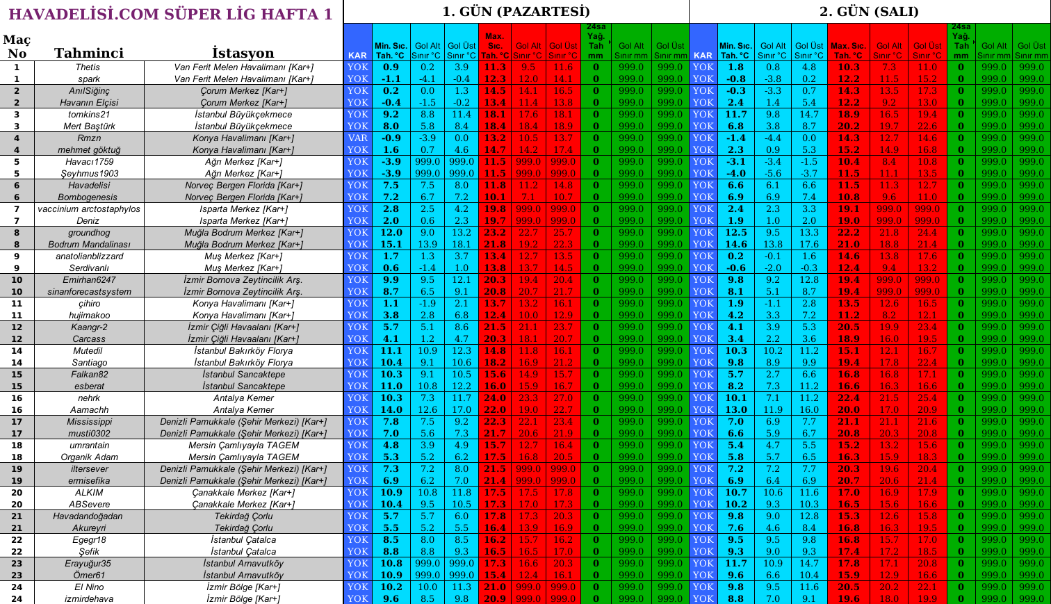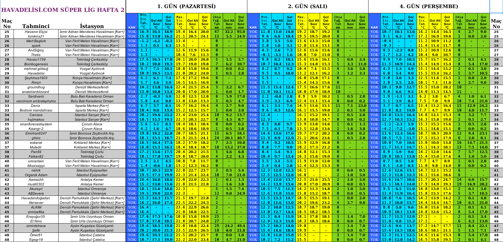 Havadelisi.com 2022-23 kış sezonu deplasmanlı hava tahmin liginin 2.haftası, birbirinden heyecanlı maçlara sahne oldu. 🙂