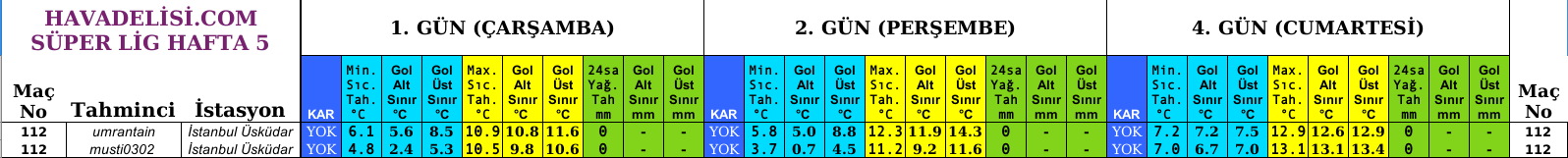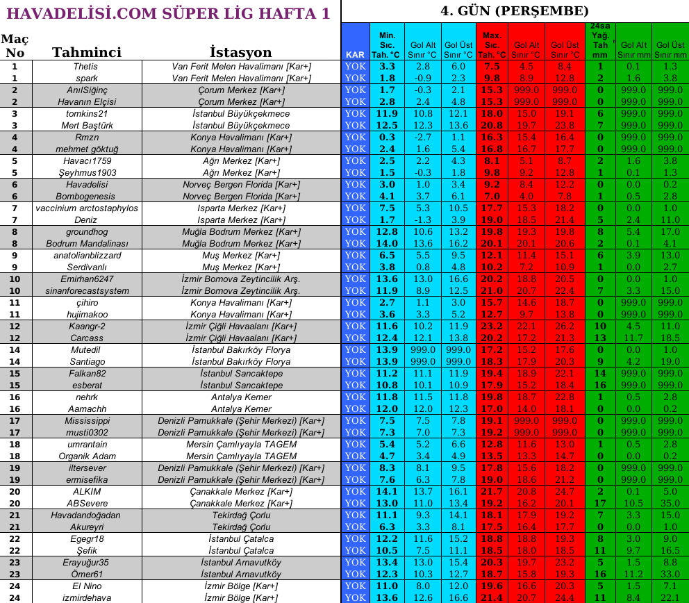 *Tahminler her zaman, ev sahibi tahmincinin istasyonu için yapılır!