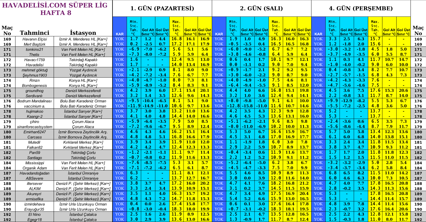 Havadelisi.com Deplasmanlı Hava Tahmin Ligi 2023 Kış Sezonu