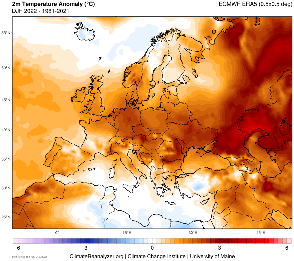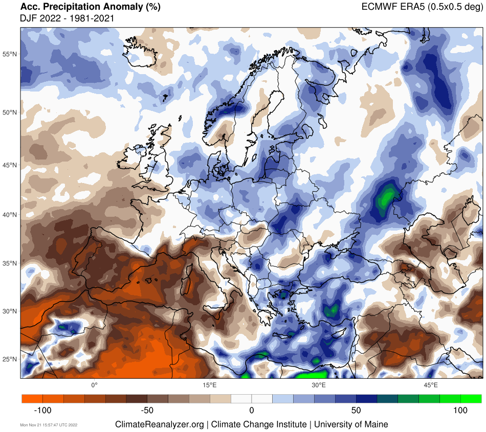 Öncelikle, geçen kışı nasıl geçirmişiz bir göz atalım. Orta Atlantik’ten İngiltere ve İspanya civarlarına kadar sarkan yüksek basınç merkezi sayesinde, İzlanda’nın sürekli devrede olduğu, bu nedenle özellikle ülkenin batı yarısında bol yağışlı geçen bir kıştı 2022. Sıcaklıklar ise, ortalamada, İç Anadolu’nun batısında normaller civarında ve biraz altında, ülkenin doğu yarısında normallerin biraz üzerinde, diğer bölgelerde ise normaller civarında seyretmiş.