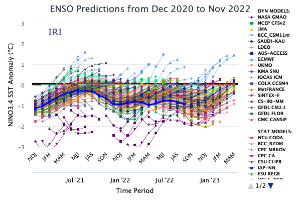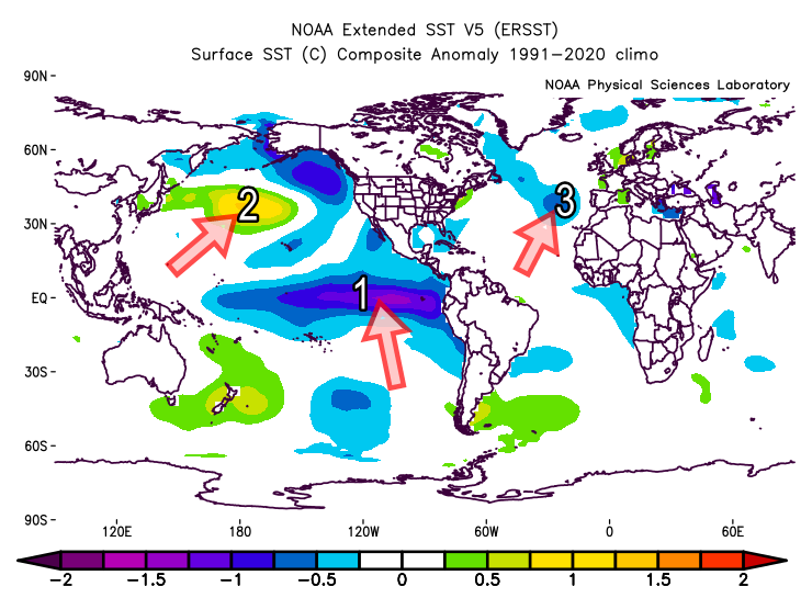 Büyük Okyanus’un (Pasifik Okyanusu) tropikal bölgesindeki deniz yüzey sıcaklıklarının normalden soğuk olması anlamına gelen La Nina, 2020 yılı ilkbaharından bu yana aralıksız devam ediyor ve uzmanları şaşırtıyor. Bu kadar uzun süren La Nina bundan önce sadece iki veya üç kez görülmüş. Geçmiş senelerdeki tahminlerimizde La Nina ve El Nino‘nun ne anlama geldiğinden hep bahsettik, onun için daha ayrıntılı anlatmayacağız.